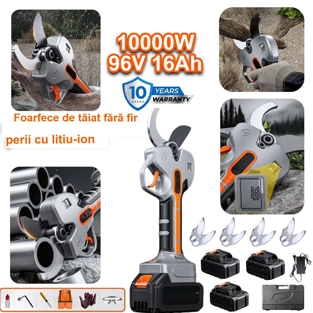 Foarfecele de tăiere fără perii cu litiu-ion este un instrument de înaltă performanță, proiectat pentru a oferi o experiență de tăiere rapidă și precisă. Cu o putere de 10000W și o baterie de 96V 16Ah, acest produs este ideal pentru utilizare în grădini, pe terenuri agricole sau în orice situație care necesită tăiere eficientă.